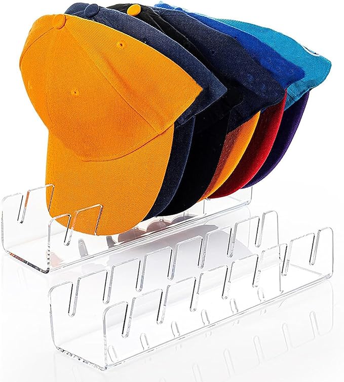 NILUTO Baseball Hat Stands for Display and Organizer Baseball Caps No Install Hat Racks for Baseball Caps - Acrylic Hat Holder for 14 Baseball Caps (2 pack clear)
