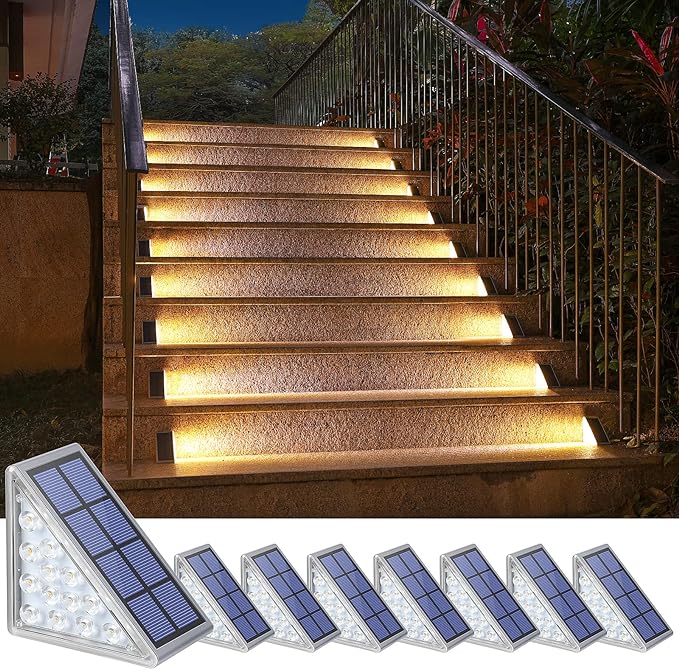 NIORSUN Outdoor Step Lights,8 Pack Warm White Solar Step Lights for Outside Waterproof IP67 Auto On Off,Solar Lights for Steps,Stair,Patio,Yard,Porch,Front Door,Sidewalk,Deck Deco